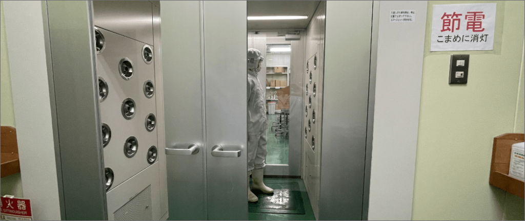 エアーシャワー(外気を遮断するエアーロックと高速ジェットエアーで防塵対策を行います)